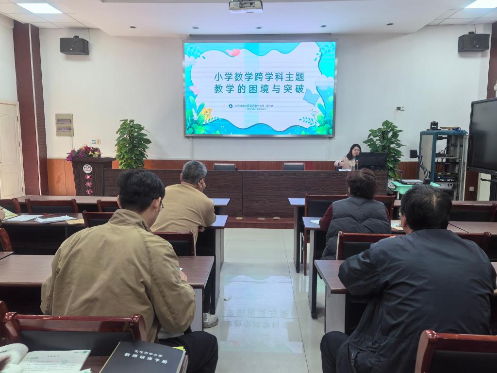 为深入落实《义务教育课程方案(2022年版)》中“每门课程应至少安排10%的课时用于跨学科主题学习活动”的要求,破解小学数学跨学科教学实践中的难点问题,2025年11月24日,太仓市浏河镇新塘小学特组织数学菜单式送培活动。本次活动邀请了太仓港港口开发区第一小学教务主任王一叶老师,带来《小学数学跨学科主题教学的困境与突破》专题讲座。
