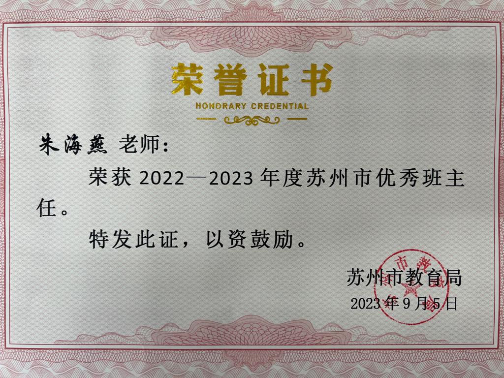 校园喜讯——祝贺朱海燕老师被评为苏州市优秀班主任
