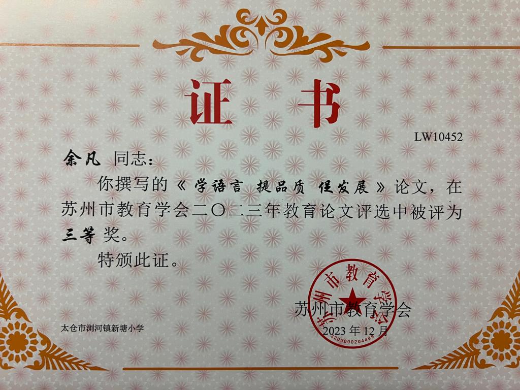 校园喜讯——祝贺章茜、倪凡婷、余凡老师的论文在苏州市教育学会教育论文评选中获奖