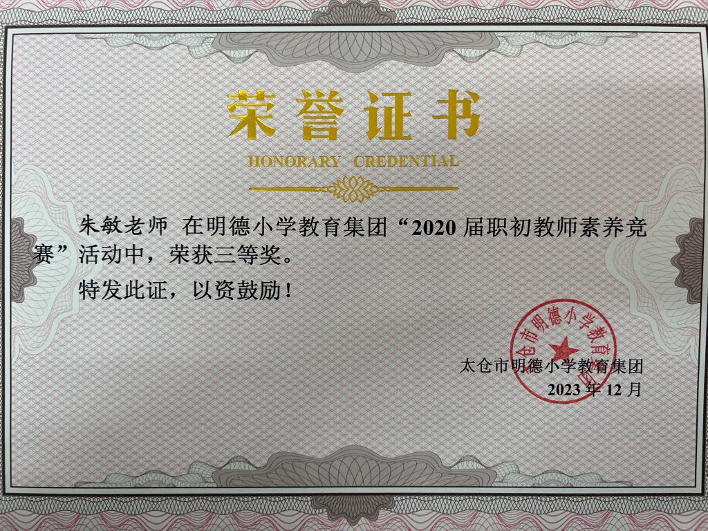 校园喜讯——祝贺王晓晨、秦爽、朱敏老师在明德小学教育集团“2020届职初教师素养竞赛”活动中获奖