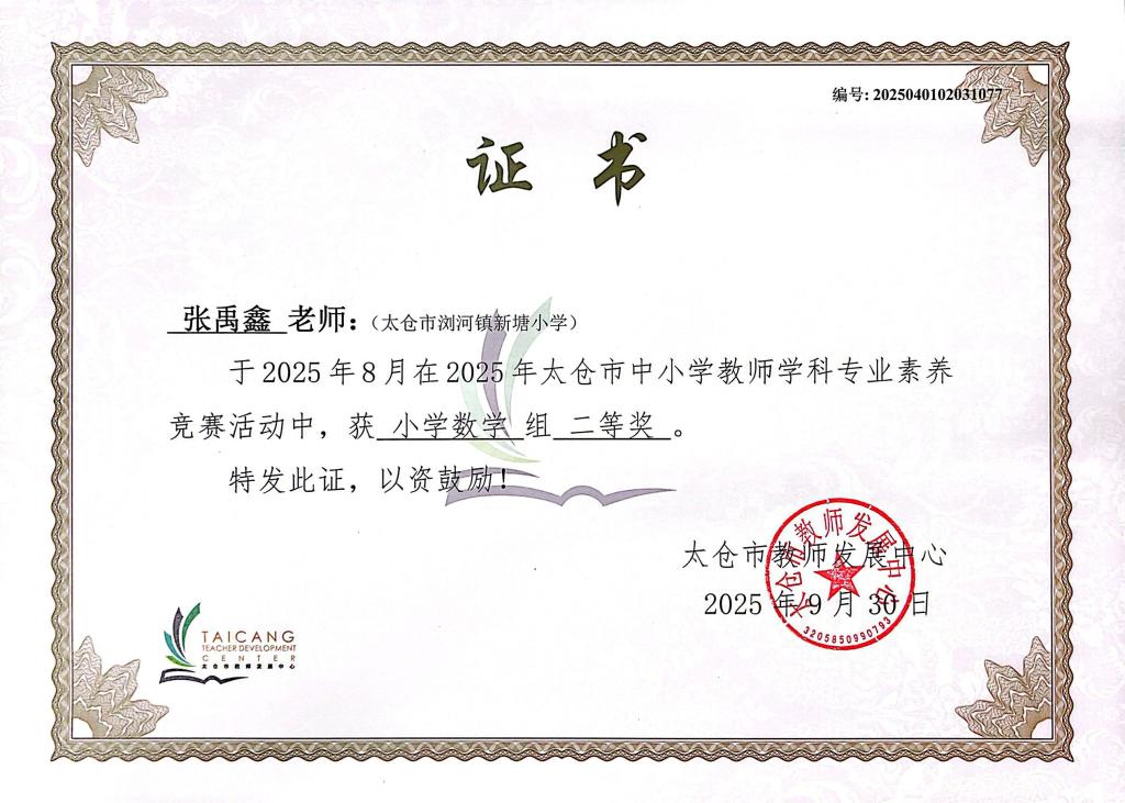校园喜讯——祝贺顾妍怡、王晓晨等五位教师在2025年太仓市教师学科专业素养竞赛中获一等奖