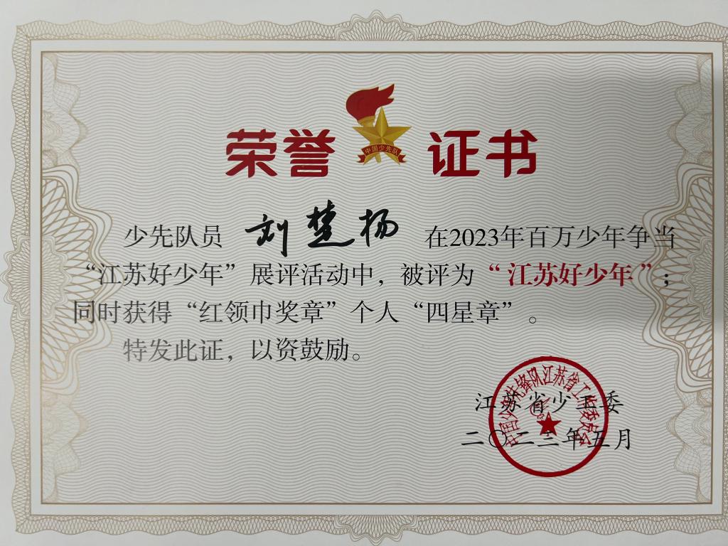 喜讯——祝贺徐涵、刘楚扬同学被评为2023年江苏好少年