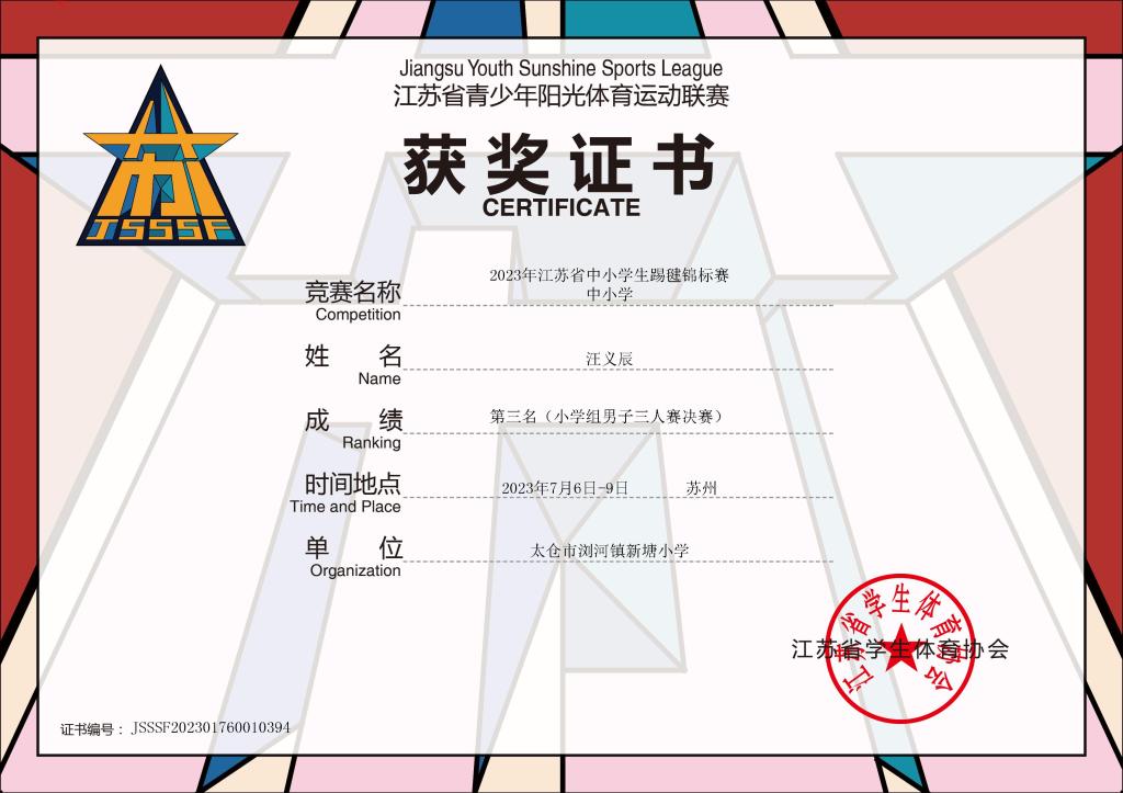 喜讯——祝贺卞志豪同学在2023年江苏省中小学生踢毽锦标赛中荣获优秀运动员称号