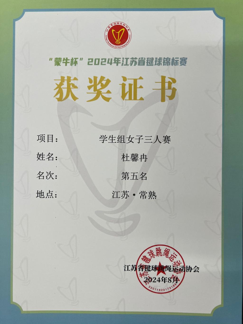 喜讯——祝贺秦家俊、黄子辉等同学在2024年江苏省毽球锦标赛中获奖