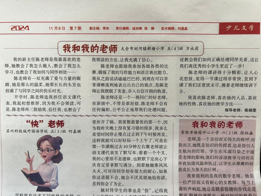 喜讯——祝贺万永莉、孙巍芹同学的习作发表于《少儿文学》