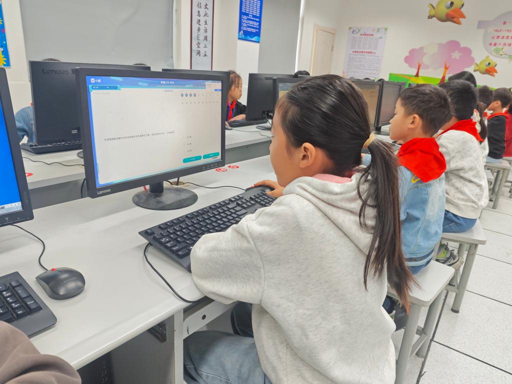 屏幕上,一道道选择题依次呈现,小选手们认真读题、仔细分析,指尖快速点击鼠标选择答案。有的同学胸有成竹,毫不犹豫地提交答案;有的同学则反复斟酌,谨慎做出选择。答题过程中,线上答题系统实时统计答题进度与正确率,各班的得分情况不断更新,营造出紧张又激烈的竞技氛围。