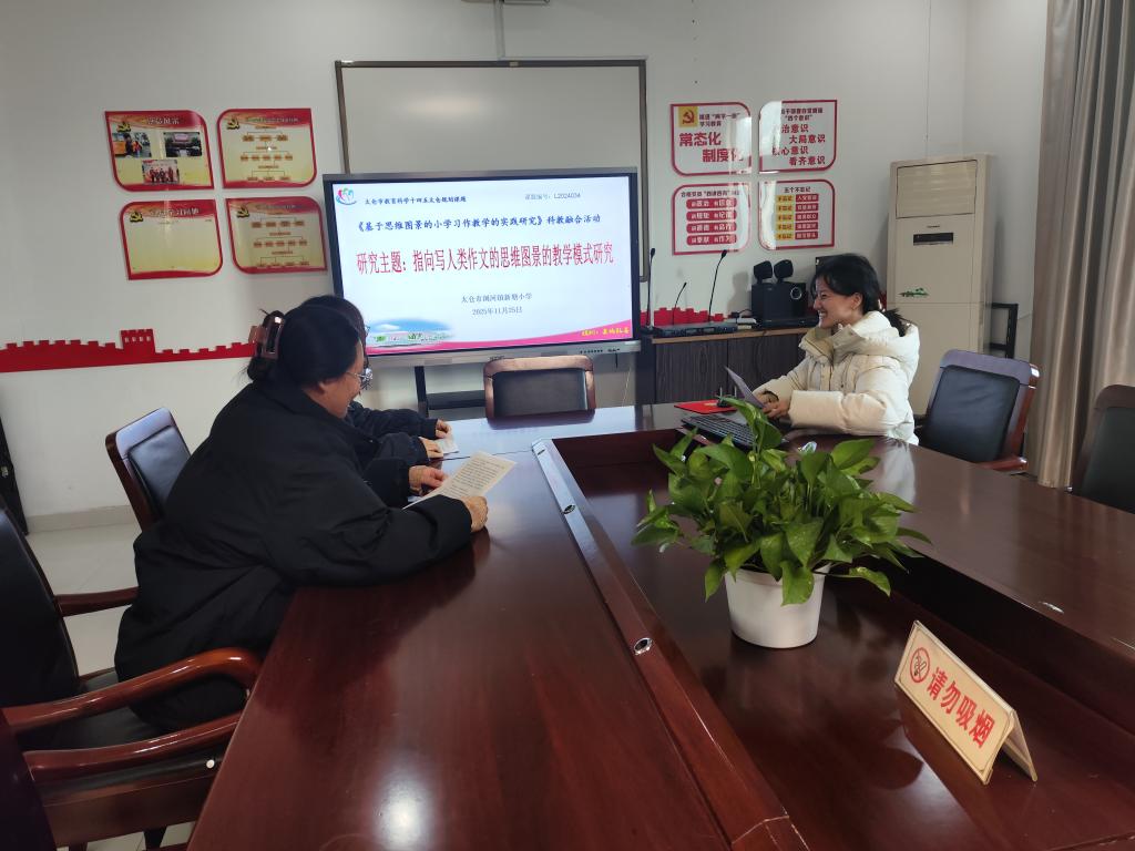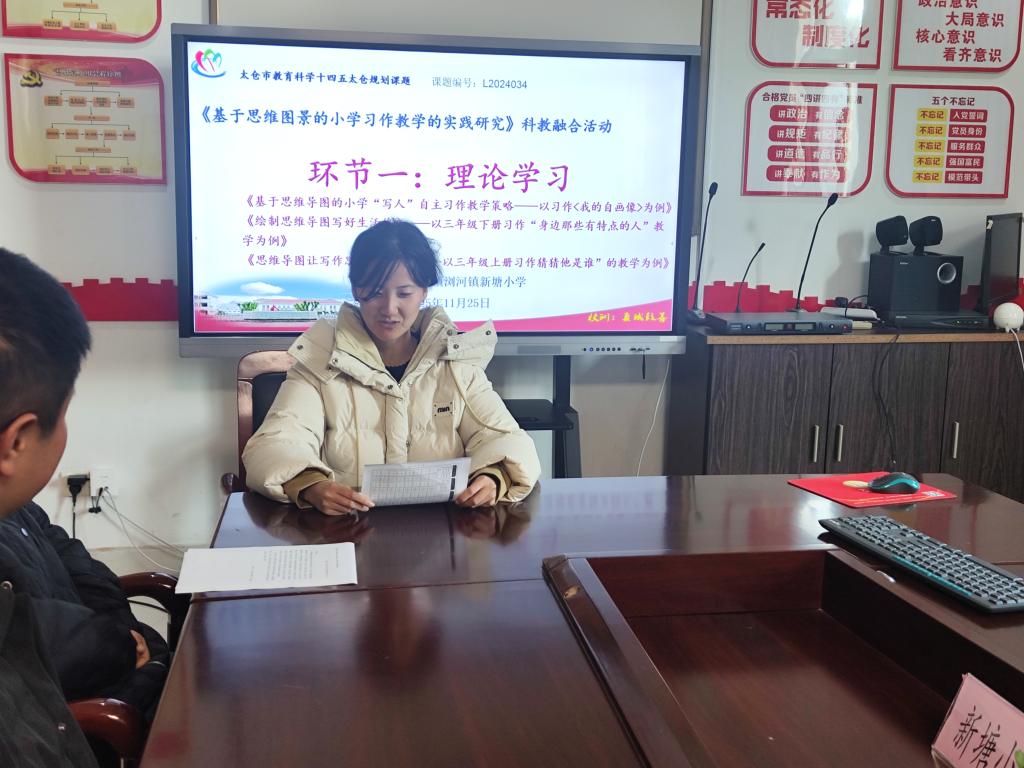 基于小学不同学段的写人类习作教学,思维图景应采用哪些呈现方式,才能实现思维支架与个性表达的平衡?如何构建基于思维图景的写人类习作教学模式,确保图景应用贯穿习作全流程并切实提升教学实效?围绕研究问题,2025年11月25日,太仓市浏河镇新塘小学程一诺、朱敏老师主持的太仓市规划课题《基于思维图景的小学习作教学的实践研究》,在学校小会议室开展课例研究活动,课题组成员共同参与。